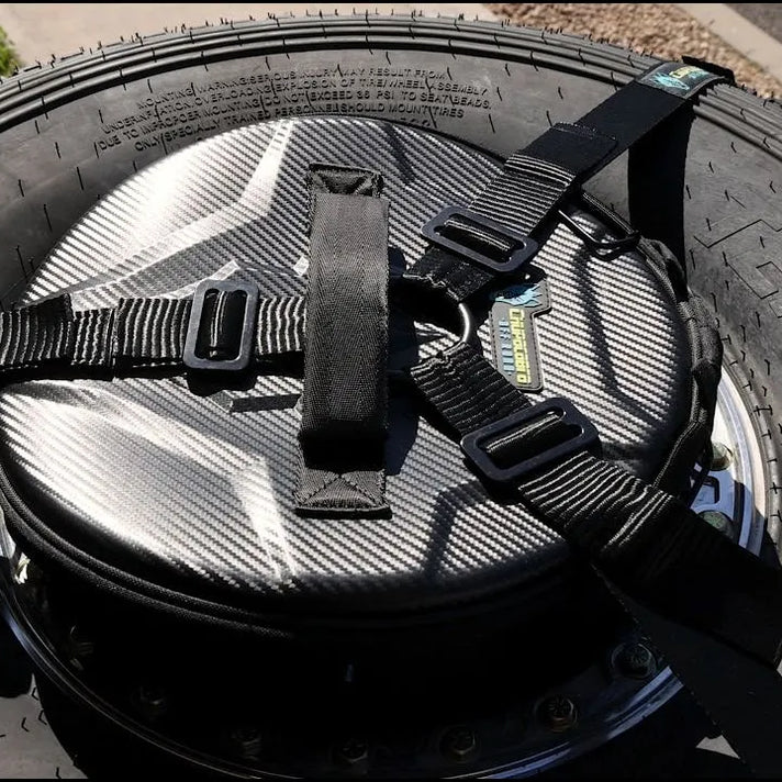 Our spare tire storage bag is the perfect addition to your storage game. This bag fits on top or under your spare tire allowing you to store tow strap, spare belts, and more!