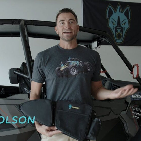 These door bags are a must have for all RZR owners! Keep your keys, mobile phones and sunglasses is a safe spot, with quick access, much safer than a pocket, so you do not lose these precious items out on the trail. The padded section greatly increases comfort for taller riders and over rough terrain.