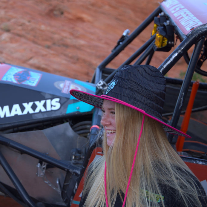 Stay shaded in our Chupacabra Offroad sun hat! Perfect for those warm days in the desert or by the water. UTV racing-inspired graphic design under the Magenta trim.