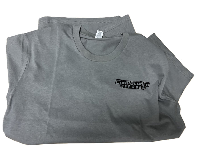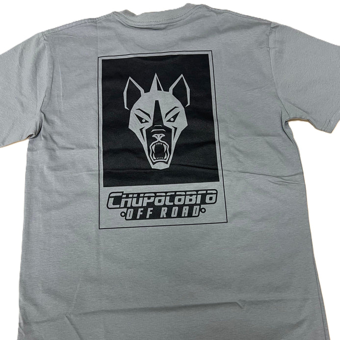 Chupacabra Frame Grey T-Shirt. Front left graphic print and all-over back print.