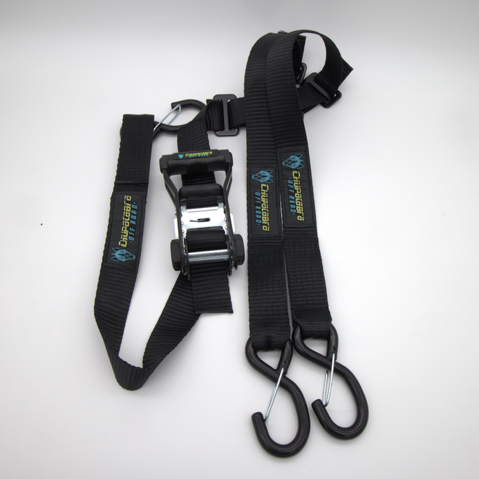 Our ratcheting Y-strap is the perfect solution for securing your spare tire! Utilizing high strength materials, this Y-strap fits up to a 35" tire.