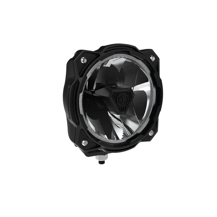 The KC Gravity® Titan™ 6" Single Light in Spot Beam revolutionizes off-road lighting, and finds itself at home on the front bumpers and A-Pillars of off-road rigs. At its heart lies the innovative Titan Core, powering 3-Source LED optics. This results in a 1.3x larger Illumination Zone than the Gravity Pro6 lights while also being 1.6x brighter. At the flip of the switch, alter between High Power Mode for intense output and an integrated Amber Dust Light for others to easily see you in dusty conditions. The Titan features a patented Pass-Through Front Cooling, a cutting-edge design that dissipates heat, ensuring optimal performance and longevity in high-heat, high-demand environments. Experience unparalleled lighting power with the Gravity® Titan™, designed to excel in the most challenging off-road adventures.