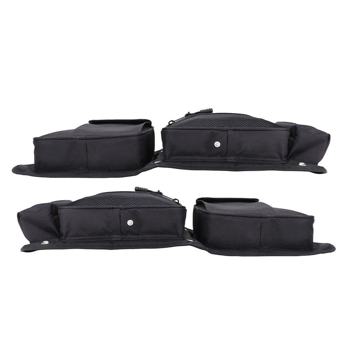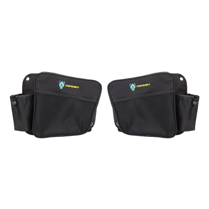 Chupacabra Offroad Rear Passenger and Driver Side Storage Bag set for your rear passengers comfort, or simply for more storage. These rear door bags are a must have for the RZR owners who are looking for an all around solution for more storage. Resistant to fading, abrasion, and rot. Thick knee pad keeps even the tallest passengers knees comfortable, no matter how rough the trail gets! A great storage bag for your RZR and keep your phone, sunglasses, key, towel. You can take out the mesh pocket to storage your water bottle or hide it if not needed. The exterior zips are all reverse coil, which means the coil sits on the inside, and the fabric sits on the outside, preventing mud or debris from the zipper.