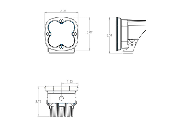 Specifications (per light): Lumens: 4,600 Utilizing 2 types of Cree LEDs Wattage/Amps: 40W / 2.90A Dimensions: 3..07" x 2.77" x 3.07" Weight: 12 ounces LED Life Expectancy: 49,930 Hours Front Lens: Hard Coated Polycarbonate Housing: Hard Anodized & Powder Coated Cast Aluminum Bezel: Billet Machined Aluminum Hardware & Bracket Material: Stainless Steel Exceeds MIL-STD810G (Mil-Spec Testing) Built-In Overvoltage Protection IP69K (Waterproof, Submersible to 9ft) IK10 Compliant (Mechanical Impact Testing) |