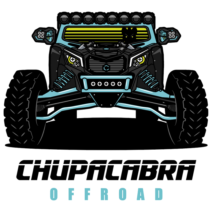 Chupacabra Offroad dresses this black and teal Can Am X3 with their stylish Cuero Race side mirrors! Rep your Chuy sticker on your laptop, water bottle, UTV roof - where you want!